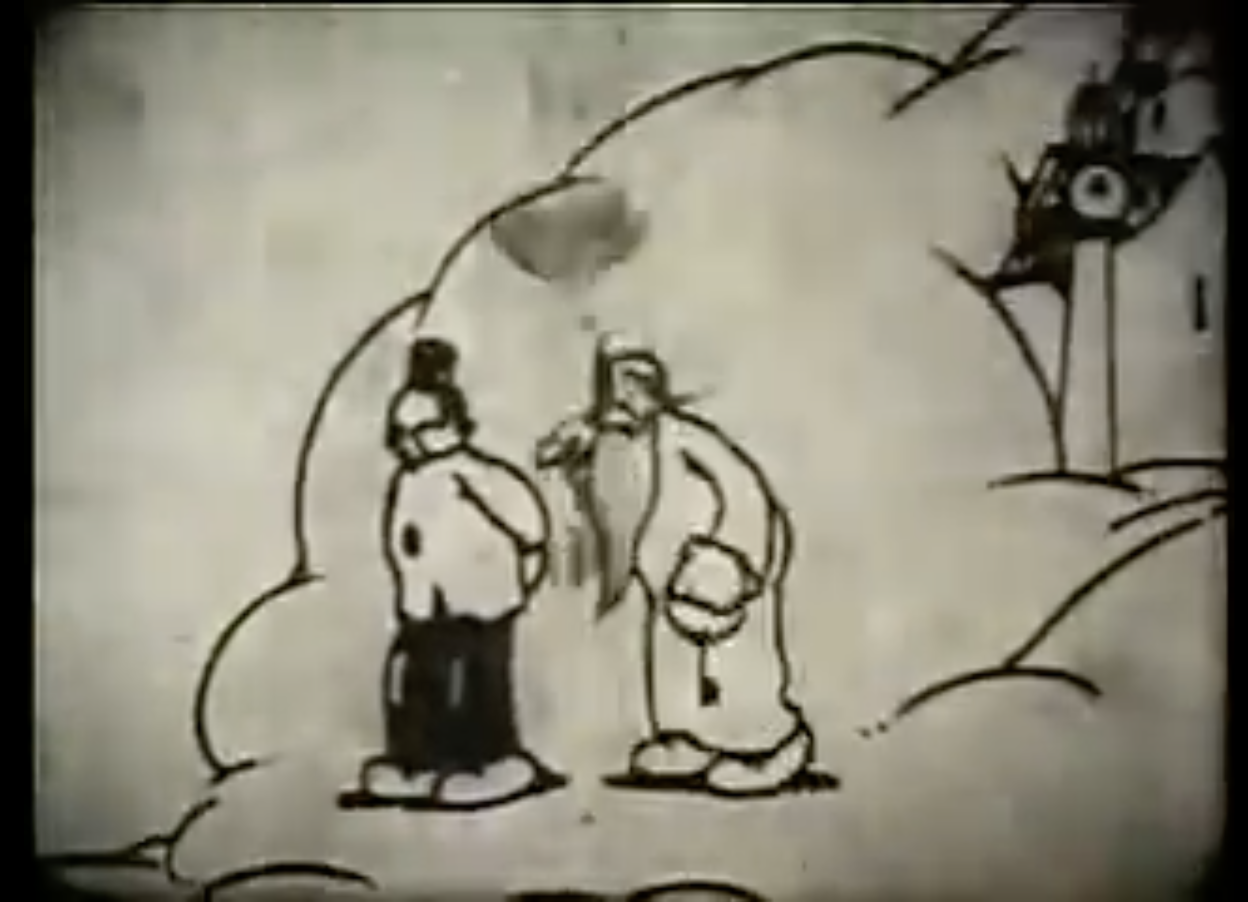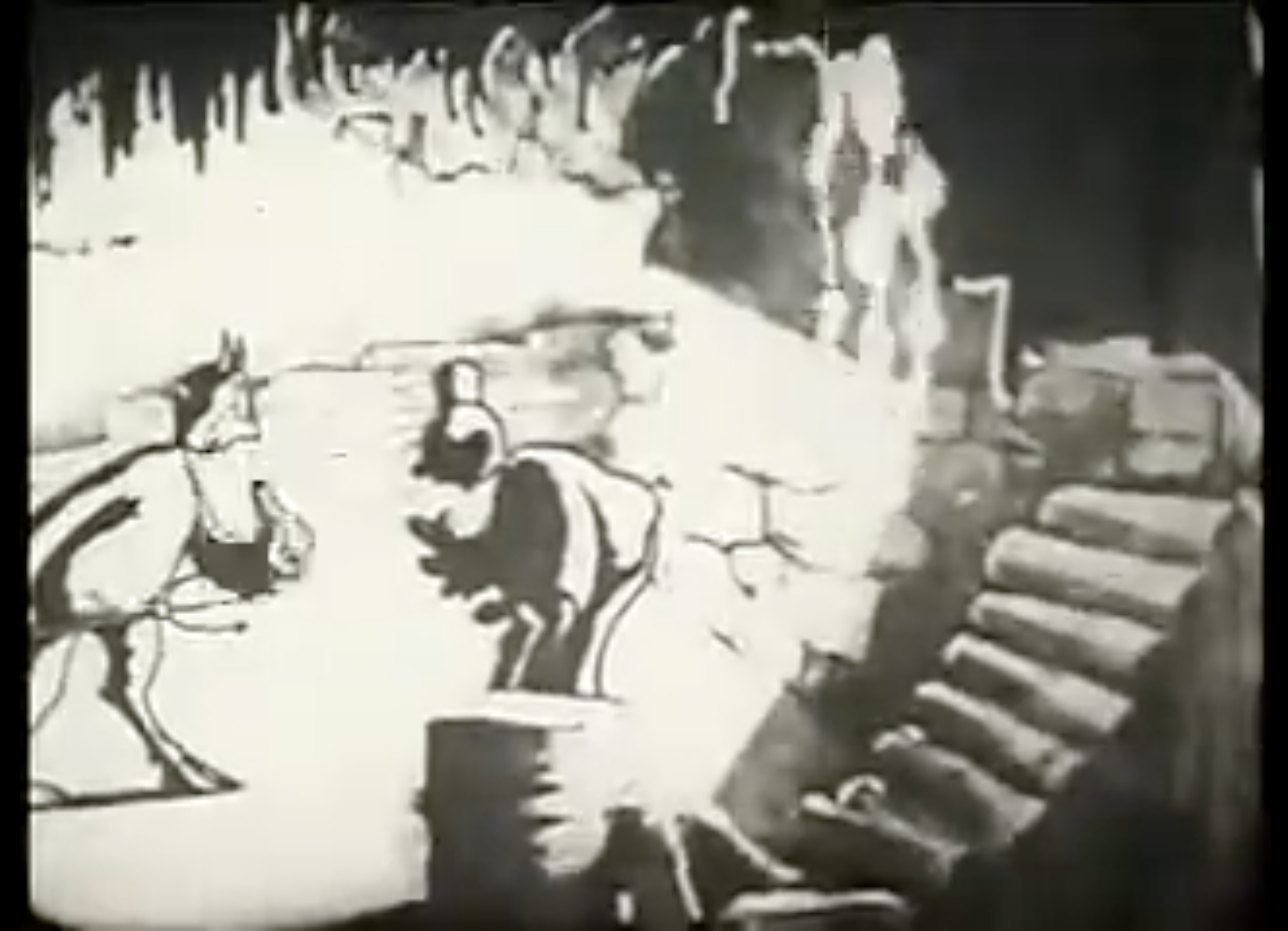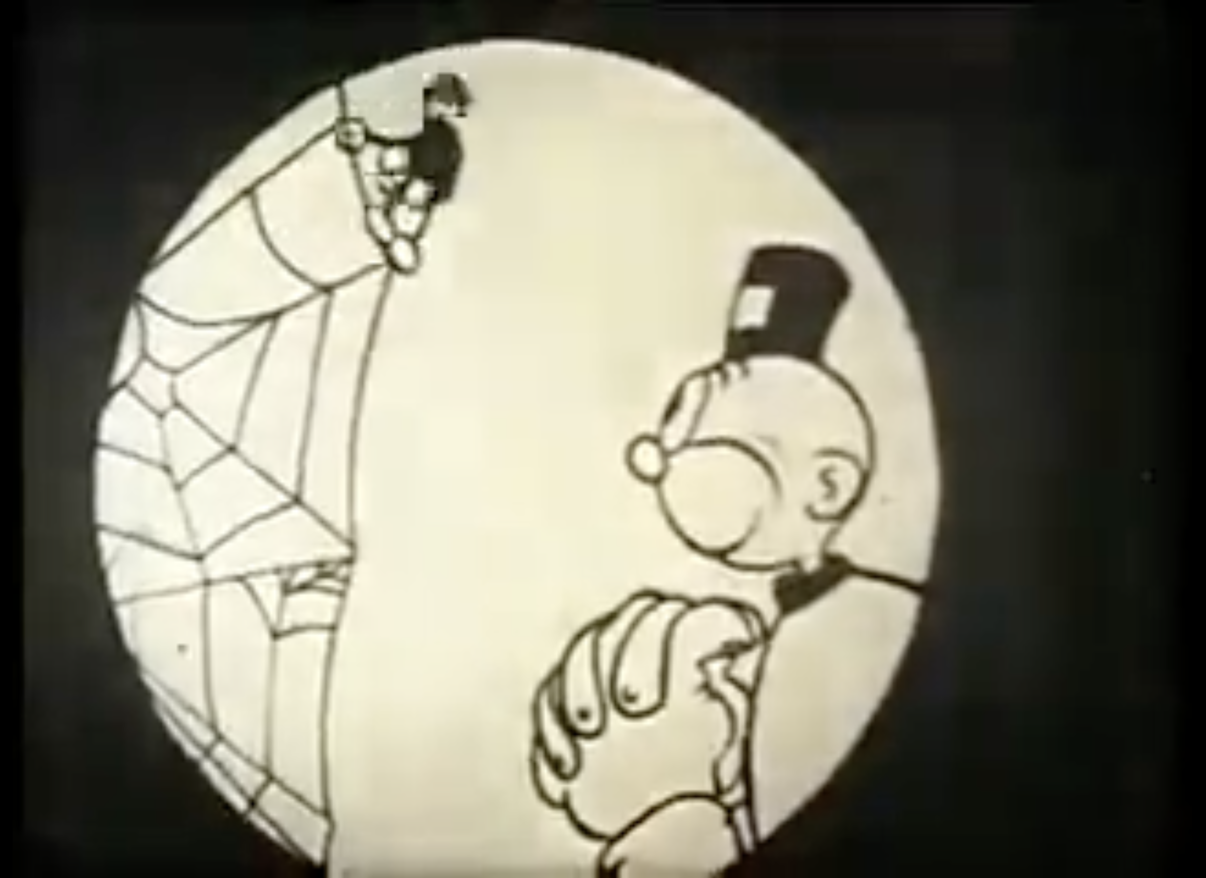 The improvements in La Cava’s studio’s animations are notable in The Spider and the Fly (1917) and The Breath of a Nation (1919), which I have attached links to here and in the “Filmography” section of this blog, where you can tell that La Cava and his animators studied the movement and performance of Charlie Chaplin.14 In The Spider and the Fly, directed by Bill Nolan, there is an evident change in animation and the technical interest beyond regular static movement of the drawings. The story glimmers with the sly humour and interest in human nature that La Cava became known for. Happy Hooligan, in a Bartleby-like tale, refuses to work and follows a spider who begins building a web ladder to Heaven, which he climbs, to find he is expected to work there too. Thrown down to Hell, Happy still refuses to work. The short is much more engaging than I make it sound, as you can see in the screen captures below, and what is possibly most notable about the short is the Rembrandt lighting. André Martin discusses the impressive lighting and shading of Happy’s scene in Hell, that this sequence “set the stage for all the scenes of burlesque and controlled excess which would be the hallmark of American animated film for the next fifty years.”15