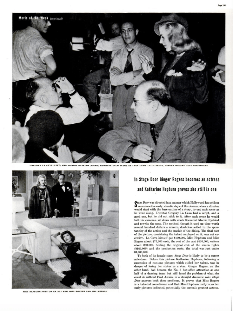 Ostensibly, Stage Door was to be based on the play that George Kaufman rushed back to New York to write with Edna Ferber when our collaboration on A Night at the Opera was finished. Tony Veiller, one of the best writers in the business, had made an adaptation, but Greg was unhappy over it being too faithful to the original. I hadn’t seen the play, but when I read the script I could understand why.