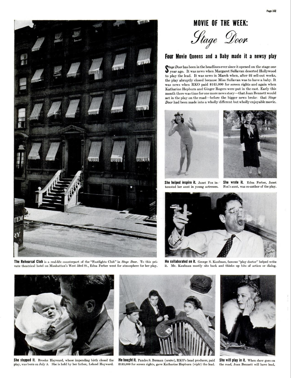 Despite all the pressures that were automatically associated with Greg’s scattershot approach to film making-and this one got so topsy turvy that Life magazine came in to do a spread on us—I was glad, in the end, to have been a part of Stage Door, in that it gave me a chance to say everything I had ever wanted to say about Broadway: the good, the bad, the ugly, and the beautiful. It also gave Patrick, Constance Collier, Eve Arden, and Lucille Ball in me a chance to work with Andrea Leeds, Ann Miller, Gail support of Ginger Rogers and Katharine Hepburn, and if there has ever been a greater cast of female talent assembled for one movie, I’ve yet to see it.